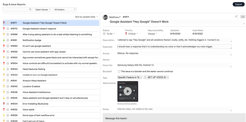 At BetaTesting, we run formal testing programs where testers have many ways to communicate to the product team and provide feedback. For example, this could be through screen recording usability videos, written feedback surveys, bug reports, user interviews, or communicating directly with the test team through our integrated messages feature.